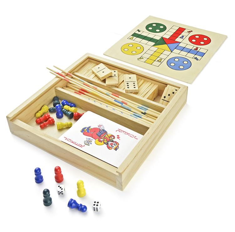 Anzahl: 20097 Spielset in praktischer Holzbox: Domino, Mikado, Brettspiel Mensch ägere dich nicht und Spielkarten. Das Logo wird auf dem Deckel graviert. Größe: 165 x 165 x 29 mm Die Produktverpackung: weiße Box Karton: 60 Material: Holz, Papier Produktfarbe: beige Kennzeichnung von Produkt: MD (60 x 60 mm), N (60 x 60 mm) Kennzeichnung auf der Verpackung: Katalogseite: 194 Nettopreis: 5.43 EUR/PC