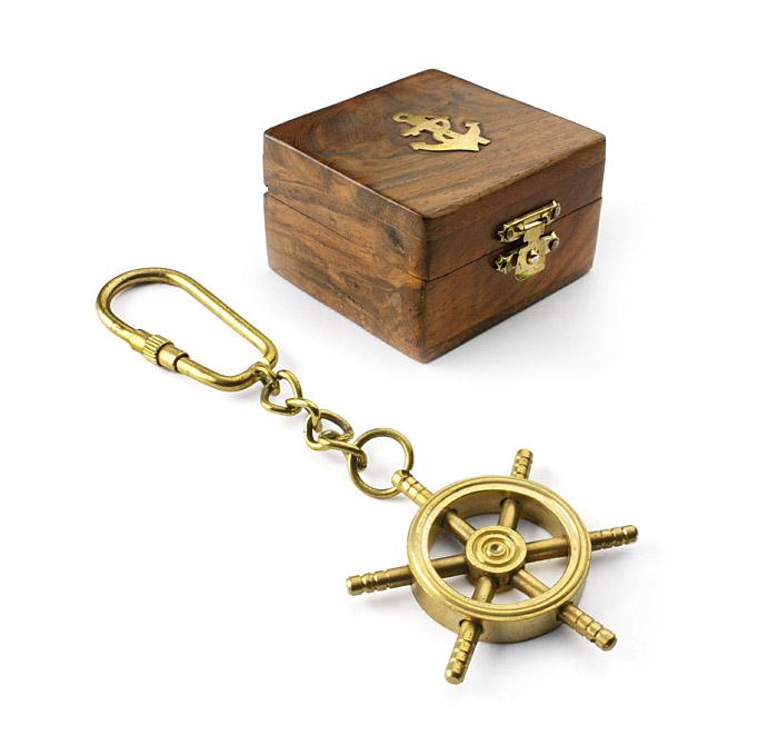 Numer produktu: 31025 Brelok mosiężny w kształcie koła sterowego.Pakowany w drewniane pudełko z wizerunkiem kotwicy. Wymiary produktu: 8 x 49 x 49 mm Opakowanie produktu: kartonik biały Ilość w kartonie: 100 Materiał: metal Kolor produktu: żółty Znakowanie produktu: nie znakujemy Znakowanie etui: MD (10 x 30 mm) Strona w katalogu: 201 Cena netto: 26.90 zł/szt.