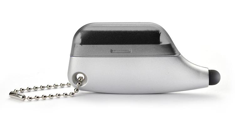 Numer produktu: 17566-02 Uniwersalny gadżet pełniący dwie przydatne funkcje: czyścika ekranów oraz touch pena. Czyścik zabezpieczony przed zabrudzeniami kolorową zatyczką. Możliwość przyczepienia czyścika za pomocą 106go łańcuszka. Logo wykonamy metodą nadruku. Wymiary produktu: 75 x 36 x 11 mm Opakowanie produktu: woreczek foliowy Ilość w kartonie: 50 / 1000 Materiał: tworzywo Kolor produktu: czarny Znakowanie produktu: GS (12 x 35 mm), N (12 x 35 mm) Znakowanie etui: nie dotyczy Strona w katalogu: 90 Cena netto: 3.59 zł/szt.