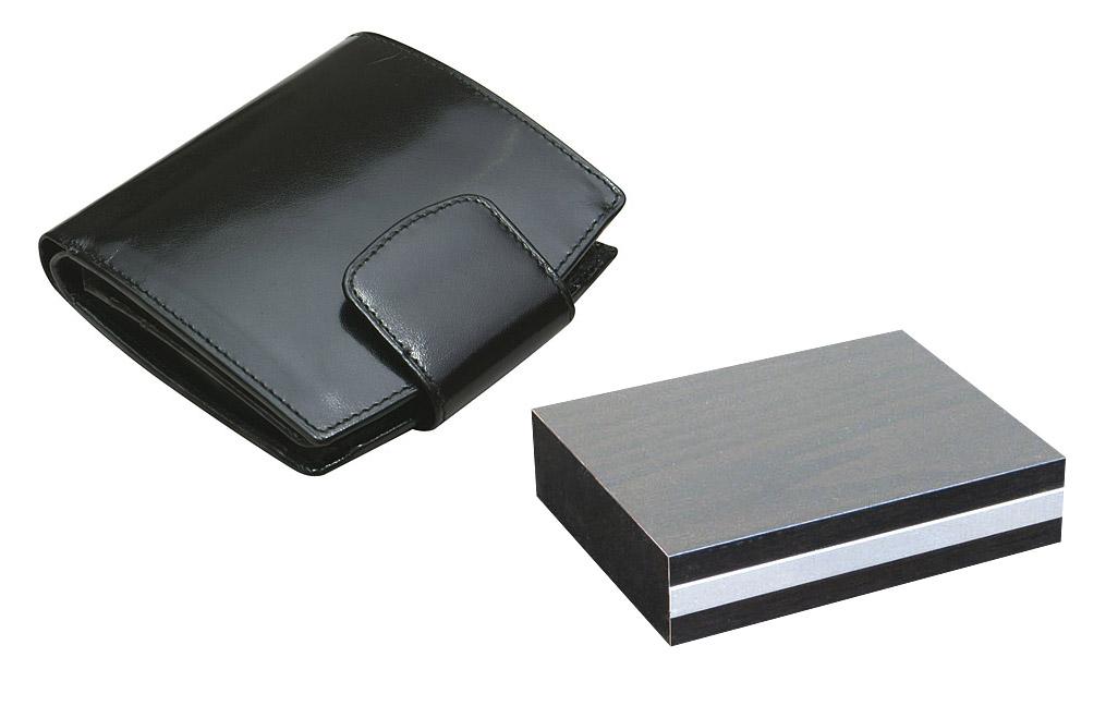 Numer produktu: 07034-02 Portfel wyposażony w miejsce na bilon, 2 kieszenie na banknoty, 5 miejsc na karty kredytowe, 4 kieszenie na dokumenty. Portfel pakowany w drewaniane pudełko. Na portfelach wykonujemy tłoczenie lub grawer. Istnieje także możliwość wykonania graweru na pudełku. Wymiary produktu: 102 x 105 mm Opakowanie produktu: pudełko drewniane Ilość w kartonie: 1 Materiał: skóra Kolor produktu: czarny Znakowanie produktu: T (30 x 60 mm), MD (30 x 60 mm) Znakowanie etui: GD (9 x 60 mm) MD (20 x 50 mm) Strona w katalogu: 84 Cena netto: 67.70 zł/szt.
